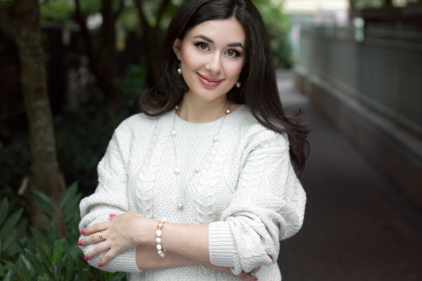 Shown in Rose Gold. The earrings are available in classic white, rose gold, pale pink and lavender. All Nouvelle Pearl Baroque Pearls feature AAA luster.